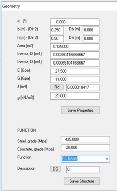 In the geometry menu is possible to insert the material properties, also allows several characteristics, since it is possible to introduce for each element diferent mechanical properties. You can change and calculate all structure with different materials.